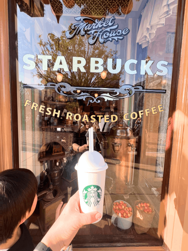 スタバの場所は、パークに入ってすぐあるメインストリートUSAの右手側。