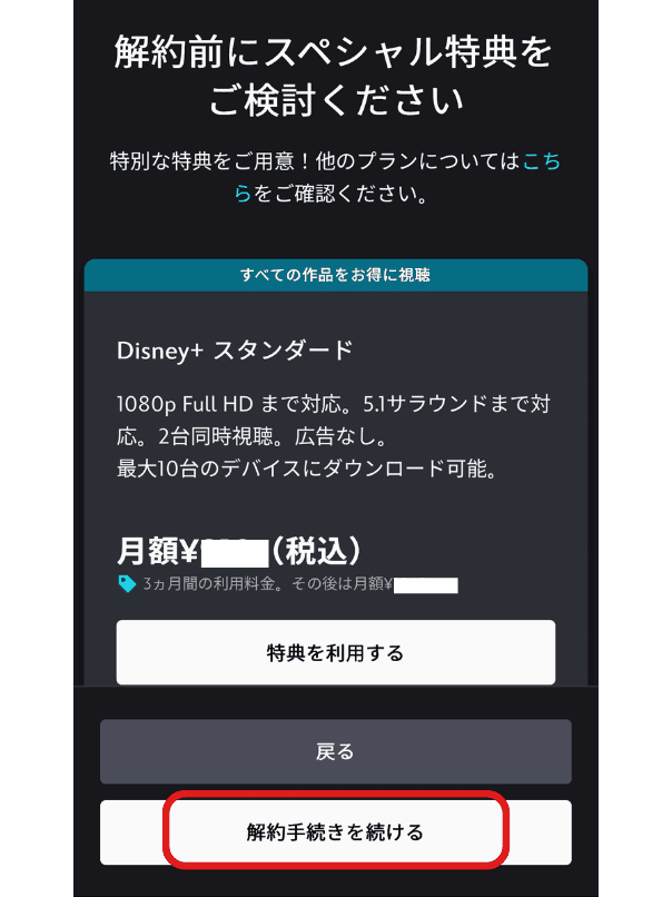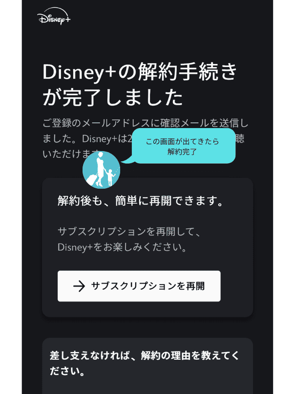 「Disney+の解約手続きが完了しました」の画面が出てくれば解約完了